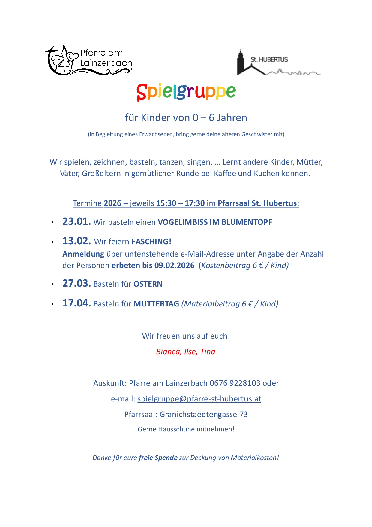Termine Spielgruppe Frühjahr 2026