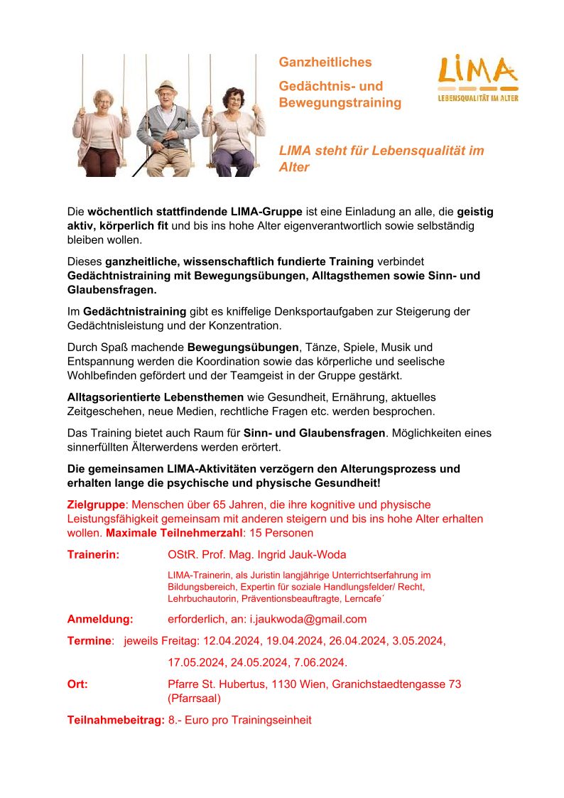Freitag 20. September 10:00 Uhr beginnt wieder LIMA – Lebensqualität im Alter. Kommen Sie vorbei!