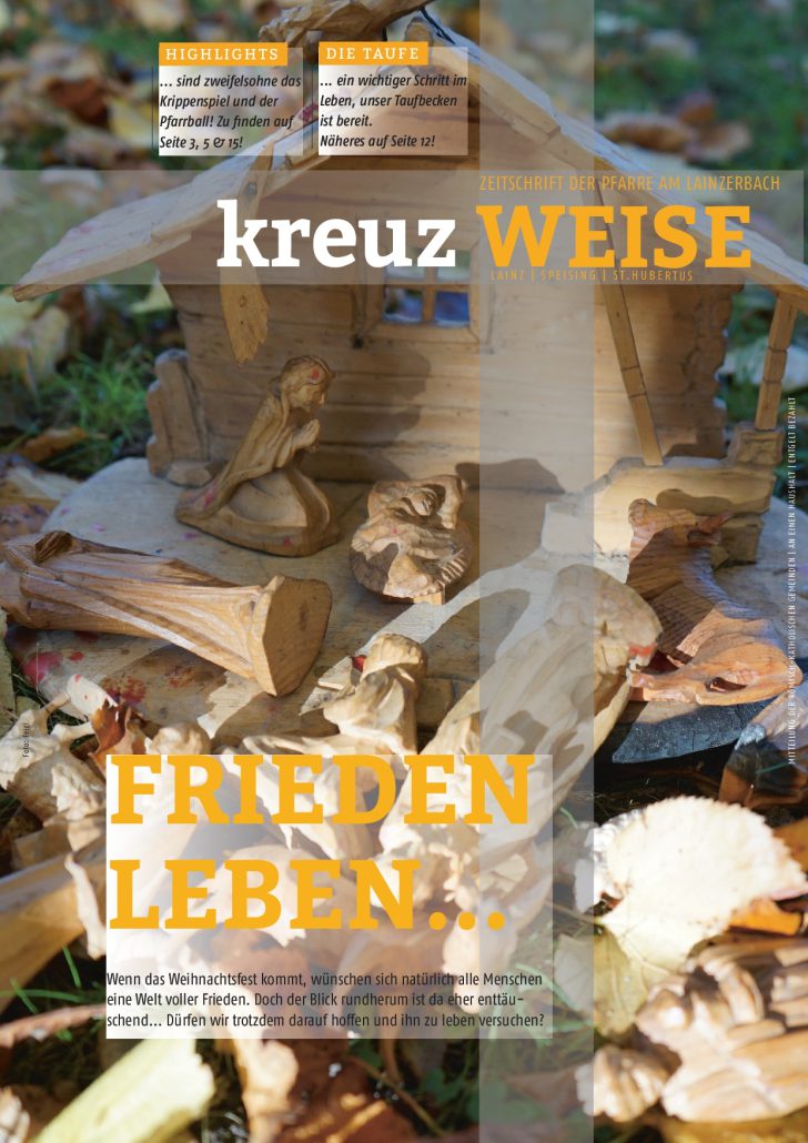 Unsere Weihnachtsausgabe der Pfarrzeitung „kreuz WEISE“ wurde die letzten Tage verteilt. Diesmal geht es um „Frieden leben“. Wir haben das Thema von verschiedenen Seiten beleuchtet –  lesen sie selbst!