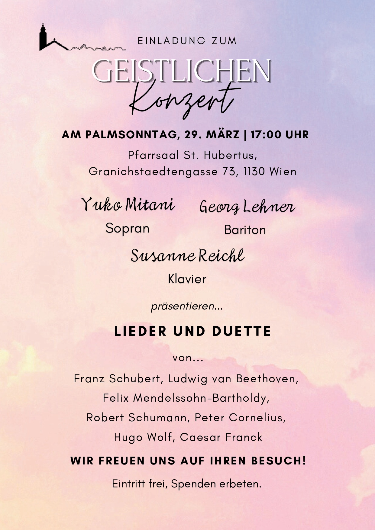 Einladung zum geistlichen Konzert am Palmsonntag 29.März, 17Uhr