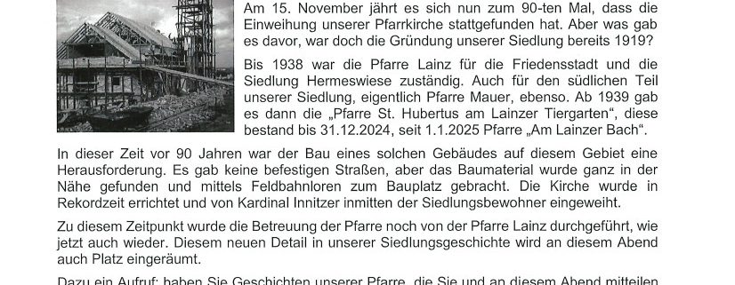 Do. 13.11. 19:00 Uhr Vortrag 90 Jahre St. Hubertus
