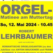 Sonntag 12. Mai, 10:45: Orgelmatinee zum Muttertag mit Prof. Lehrbaumer