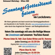 /0 Kommentare/von St. HubertusWie kann das gehen? Im Dekanat wurde nun eine Lösung entwickelt, die sogar die Möglichkeit zur Kommunion beinhaltet! Wir feiern getrennt in der Hauskirche oder via Livestream direkt aus einer unserer Pfarren in Dekanat und danach ist es möglich in unserer Kirche, wie auch in den anderen des Dekanats, die Hl. Kommunion zu empfangen.