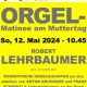 | 10h45 | Orgelkonzert zum Muttertag mit Prof. Lehrbaumer (Bruckner, Schmidt) |